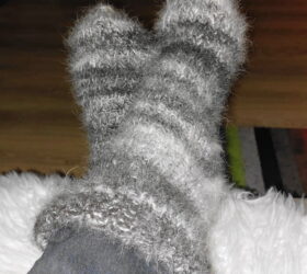 Barbara Gerkhardt hat wieder etwas vorgearbeitet und die ersten Exemplare von Socken (für Erwachsene und – NEU – für Babies) und Handschuhen aus Neufundländerwolle gestrickt.