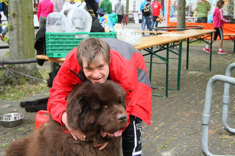 Das 13. Deutsche Down-Sportlerfestival in Frankfurt am Main war für alle Teilnehmer und insgesamt über 2700 Gäste aus ganz Deutschland ein wunderbarer Festivaltag. Das Team von Neufundländer in Not e. V. durften auch dieses Jahr wieder als Gäste dabei sein. Es war für uns alle ein wunderschöner Tag, es ist etwas ganz besonderes mit zu erleben, wie unsere Neufis in gewohnter ruhiger und gelassener Art „Extrem – streicheln“ zuließen und einen ganzen Tag Lebensfreude schenkten. Zu hören wie, unseren Neufis Geschichten, Geheimnisse oder Wünsche ins Ohr geflüstert wurden, war zum einen amüsant aber es machte auch oftmals nachdenklich. Als krönenden Abschluss und Dankeschön verteilten unsere Bären so manchen feuchten Neufikuss der mit einem Pfui oder „Der kann ja auch küssen“ erwidert wurde. Wir freuen uns schon sehr auf das nächste Jahr, wenn wir wieder auf diesem weltweit einzigartigem Festival dabei sein dürfen und wünschen allen dass sie gesund bleiben bis wir uns wieder sehen im Juni 2016.